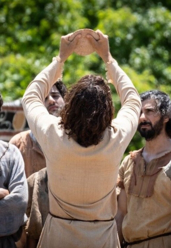 'Kata Yesus: ”Suruhlah orang-orang itu duduk.” Adapun di tempat itu banyak rumput. Maka duduklah orang-orang itu, kira-kira lima ribu laki-laki banyaknya. Lalu Yesus mengambil roti itu, mengucap syukur dan membagi-bagikannya kepada mereka yang duduk di situ, demikian juga dibuat-Nya dengan ikan-ikan itu, sebanyak yang mereka kehendaki.' - Yohanes 6:10-11